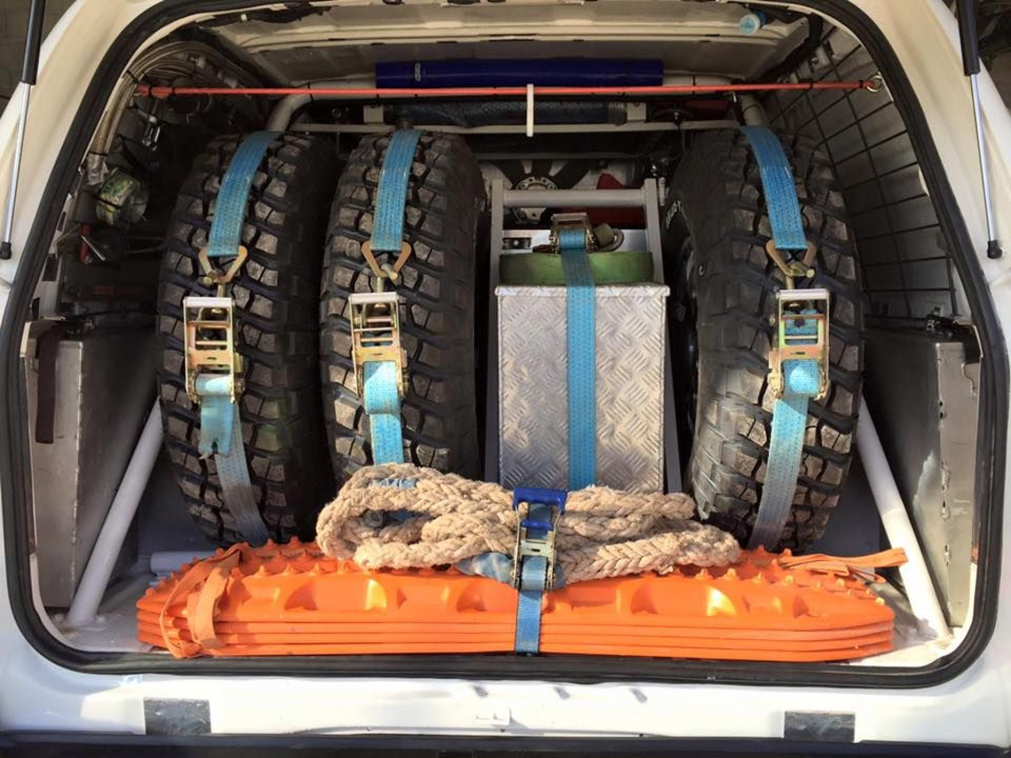 Zeer groot aantal reserveonderdelen (nieuwe turbo, nieuwe injectiepomp, versnellingsbak, tussenbak, draagarmen & ophangingen, extra gevlochten velgen, carrosserie-onderdelen, enz.)
